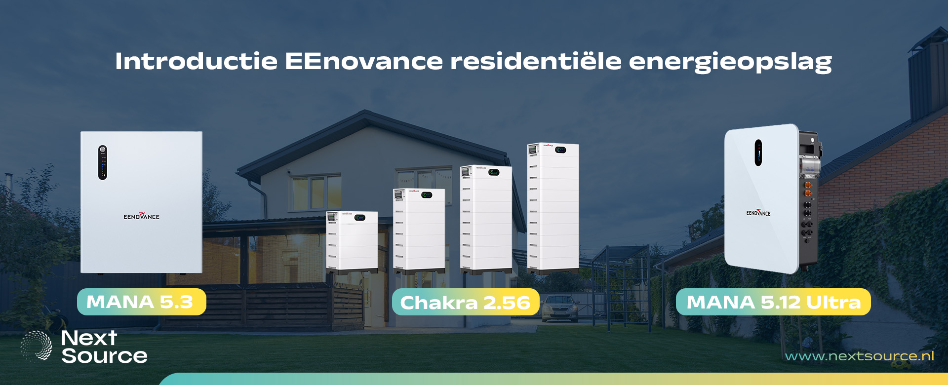 Next Source voegt de residentiële Mana- en Chakra-serie van EEnovance toe aan het assortiment energieopslag. Deze LFP-batterijen (LiFePO4) bieden installateurs betrouwbare, modulaire oplossingen met lange levensduur. Ze zijn compatibel met verschillende hybride omvormers en eenvoudig te integreren in residentiële projecten.